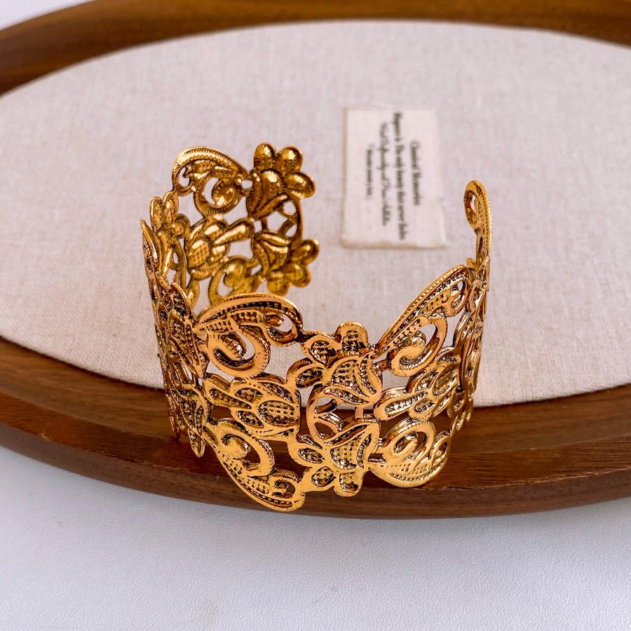 European And American Metal Flower Cutout Open-ended Bracelet Armband